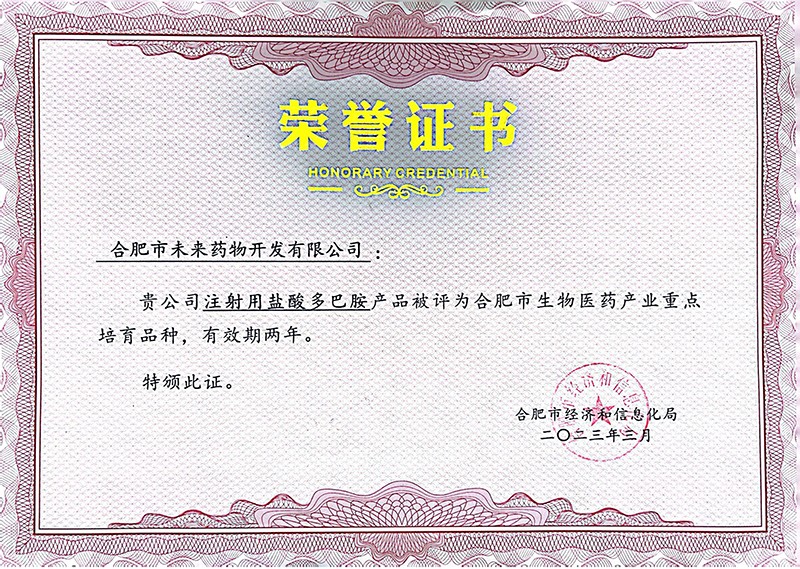 公司产品“瑞巴斯®注射用盐酸多巴胺”入选生物医药产业重点品种培育目录,不仅助力了合肥市生物医药产业发展,同时有力提升了威客电竞·(中国)VK GAMING,的知名度及产品品牌影响力。