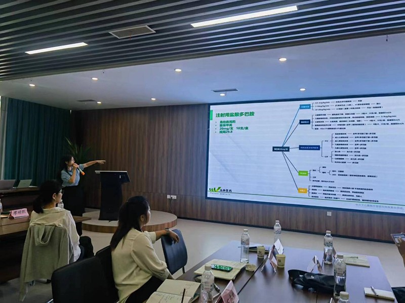 市场部产品经理任学敏和袁飞龙分别对公司核心产品立天微®—多种微量元素注射液(Ⅰ)、瑞巴斯®—注射用盐酸多巴胺、立天炎®—莪术油注射液进行了详细的讲解,现场学员与讲师互动讨论,气氛热烈,增强了新员工们对产品知识的理解和掌握。期间还邀请安徽医药代表陆圆经理做了案例分享,学员们受益匪浅。